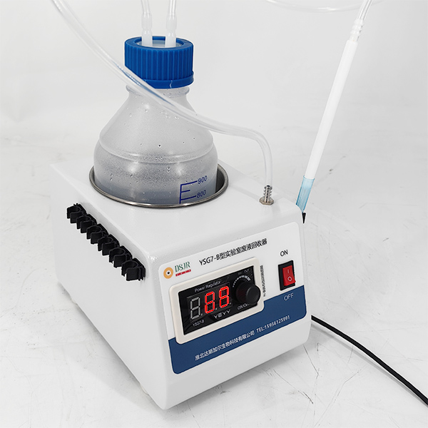 YSG7-B型实验室废液回收器工作原理是采用内置的微型负压泵抽收集瓶中的气体产生负压,用聚乙烯管连接捕收集瓶和收集头,从收集头接触溶液表面的微量管中吸去液体。